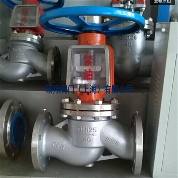 (6)介质流动方向 公称压力PN≤16MPa时,一般采用顺流,介质从阀瓣下方向上流;公称压力PN≥20MPa时,一般采用逆流,介质从阀瓣上方向下流.以增加密封件能。使用时,截止阀介质只能单方向流动,不能改变流动方向。